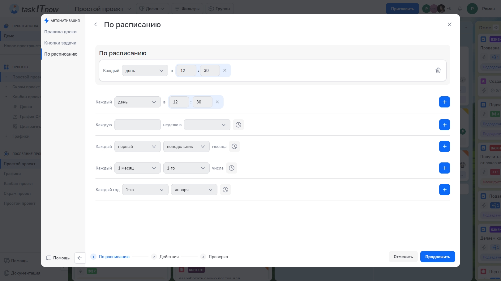 alt: Настройка расписания автоматизации в taskITnow