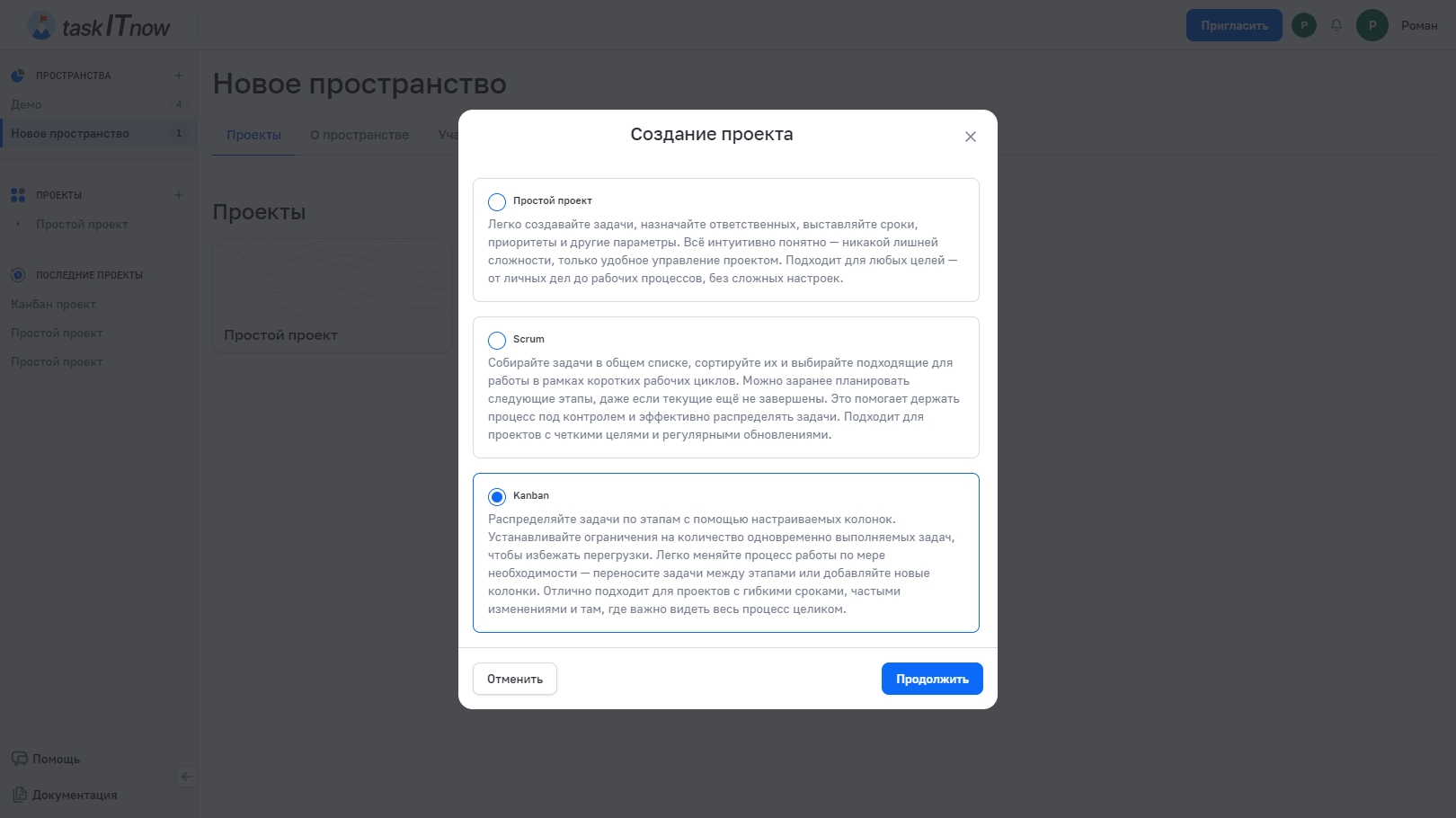 Подробнее о типах проектов и их отличиях — в разделе Проекты.