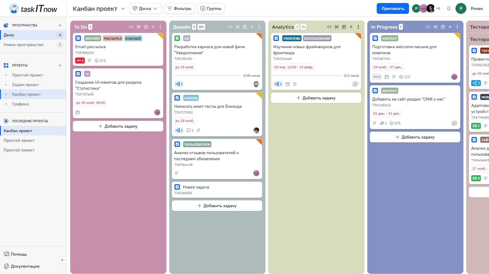 Вы создали пространство, проект, задачи и пригласили коллегу. Вот что ещё можно сделать: