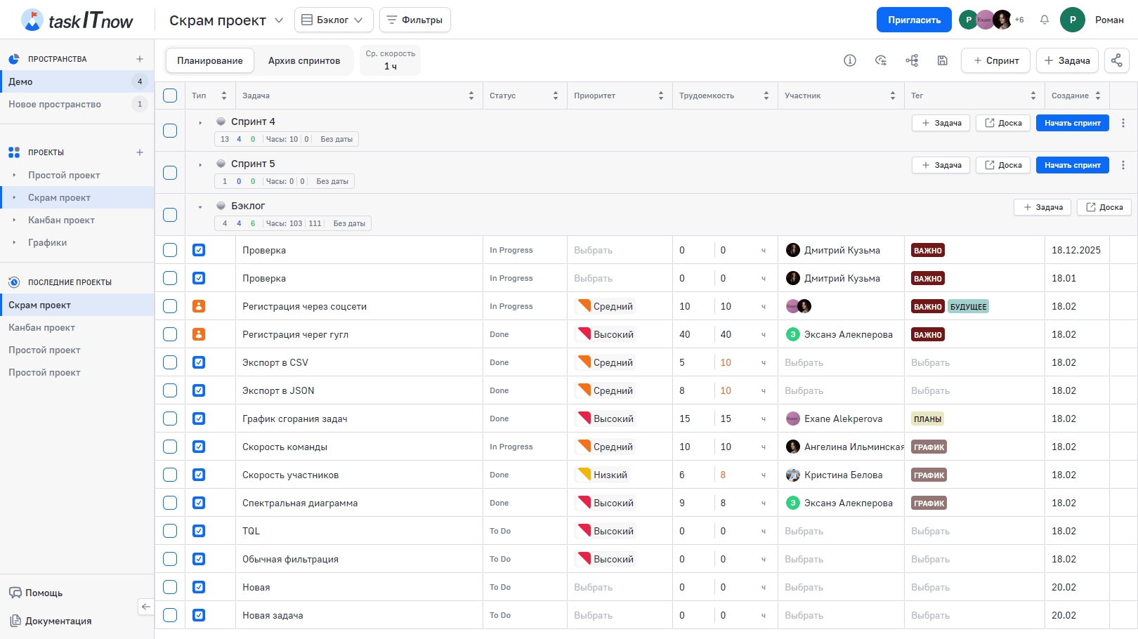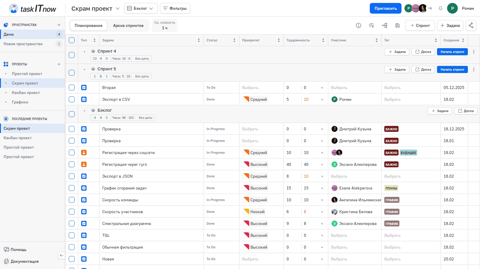 Это пошаговое руководство поможет вам пройти путь от регистрации до завершения первого спринта в Scrum-проекте. Вы увидите, как работает весь цикл — от бэклога до аналитики.