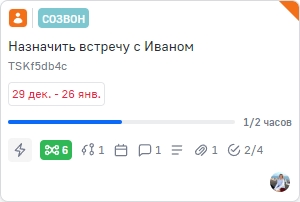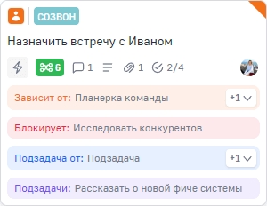 Если задача имеет связи с другими задачами, на карточке могут отображаться развёрнутые баннеры: